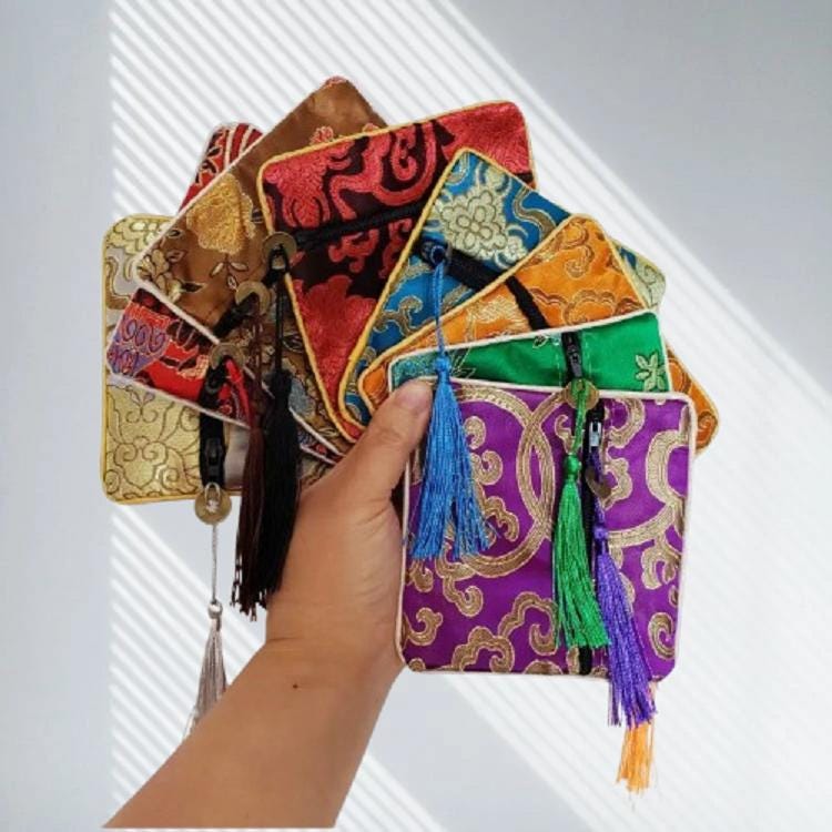 6pcs Mix Color Brocade Fabric Drawstring Pouches for Jewelry / Gift Packaging